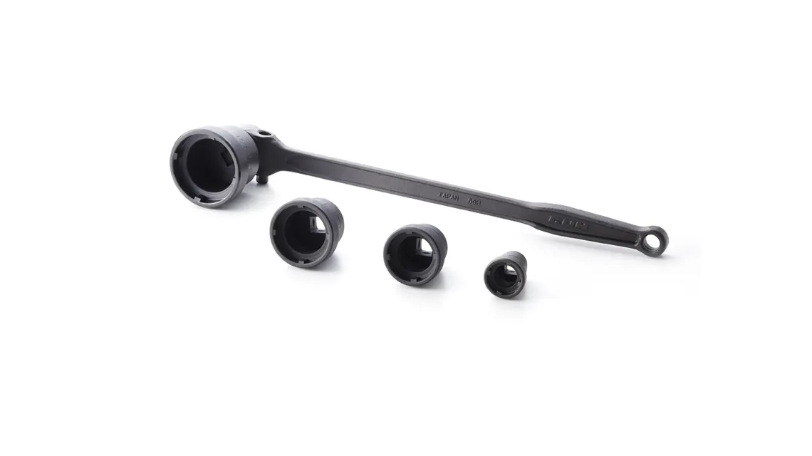 Fuji Hylsyavainsarja Fujin hylsyavainsarja kattaa mutterialueen M10x0,75:stä M50x1,5:ään ja sisältää kaksi erilaista kahvaa ja kaksi erilaista jatkovartta. Lisäksi siinä on irralliset työkalut mutterikokoille M55x2:sta M100x2:een, joissa on kaksi eri pituutta kahvoille.